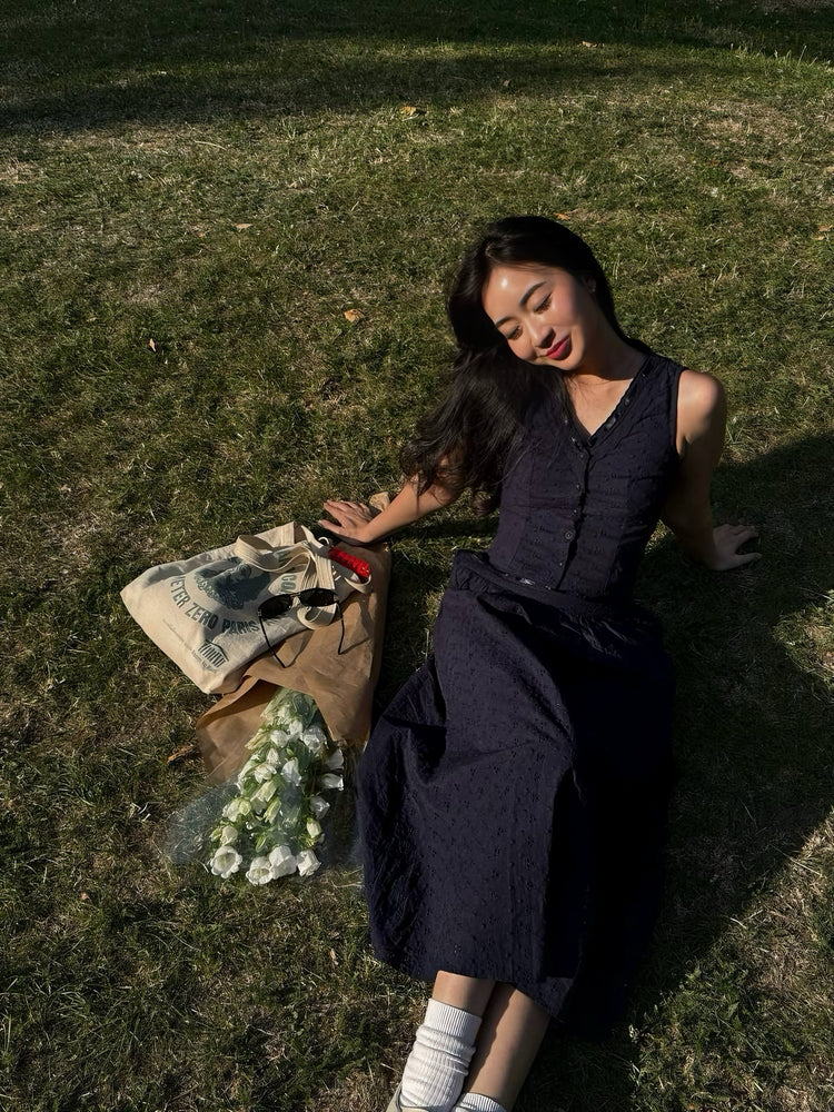 [BUNDLE SET] Soft Spot Top & Riding Round Skirt in Navy