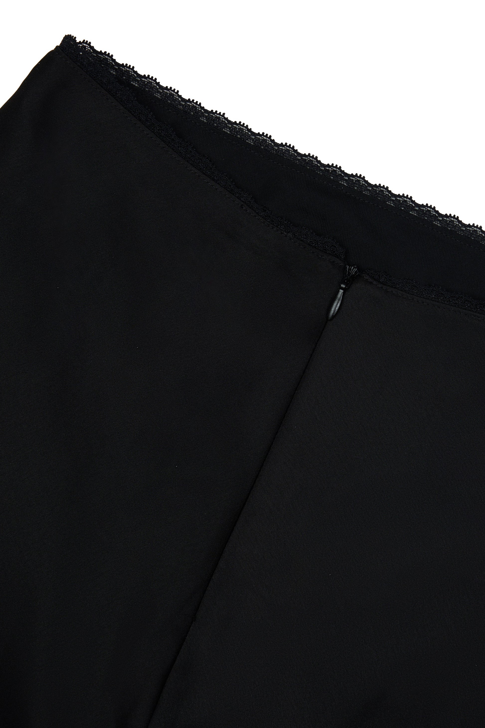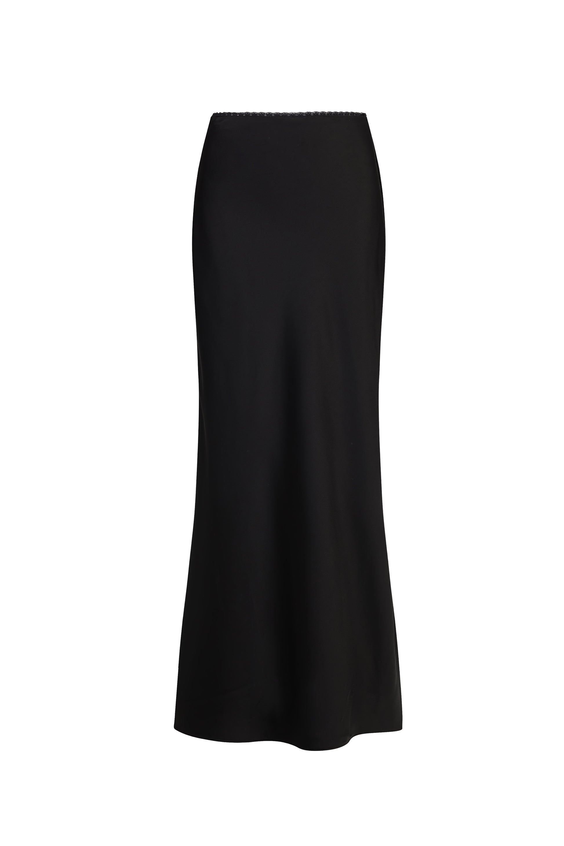 Cut in fluid satin with a soft A-line flare, this maxi skirt skims the body and moves easily with every step. Lace trim detailing along the waist adds a subtle point of interest, while a concealed back zip keeps the finish clean and streamlined.