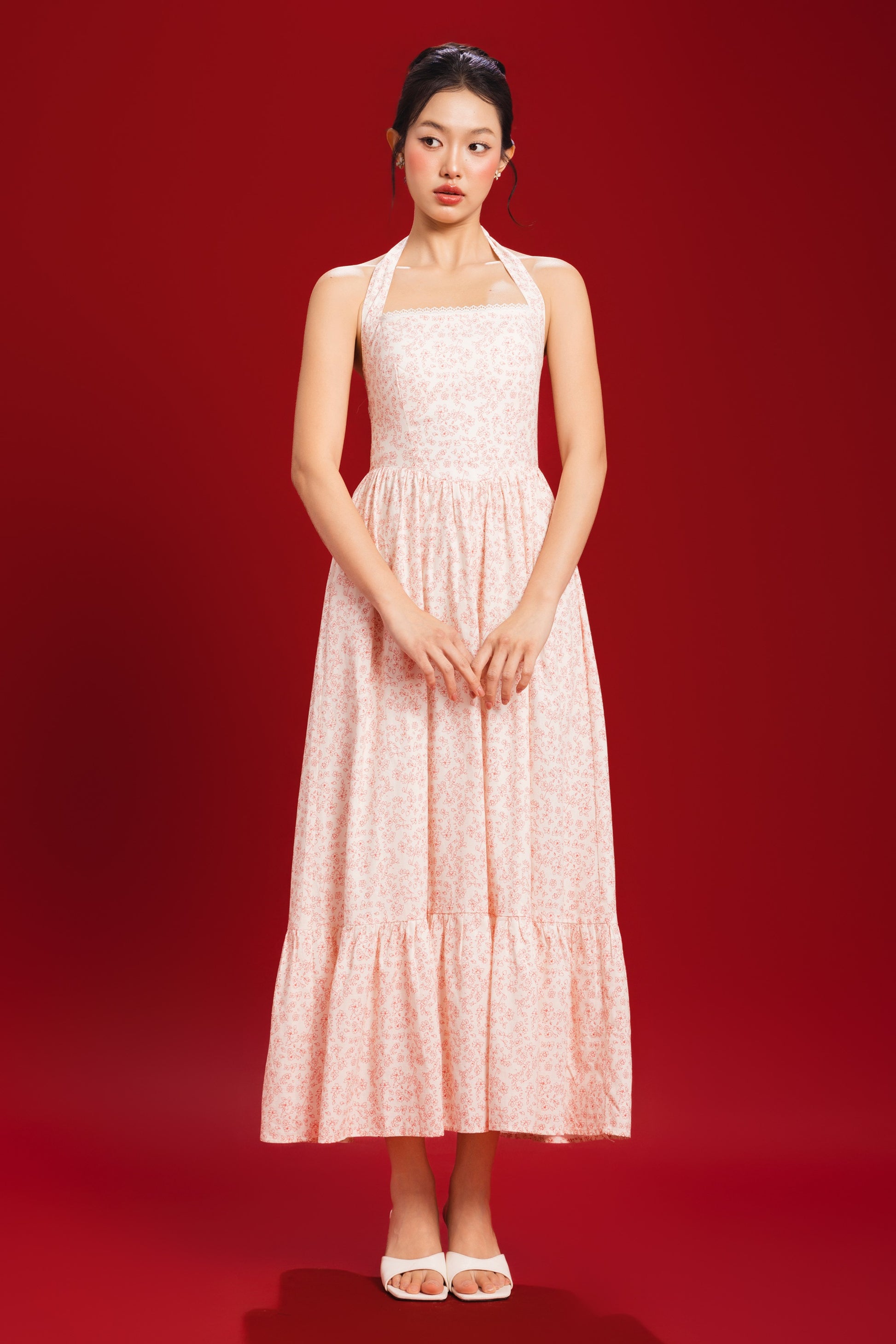 Girl Crush Halter Floral Padded Maxi Dress in Petals At Ease (Red)