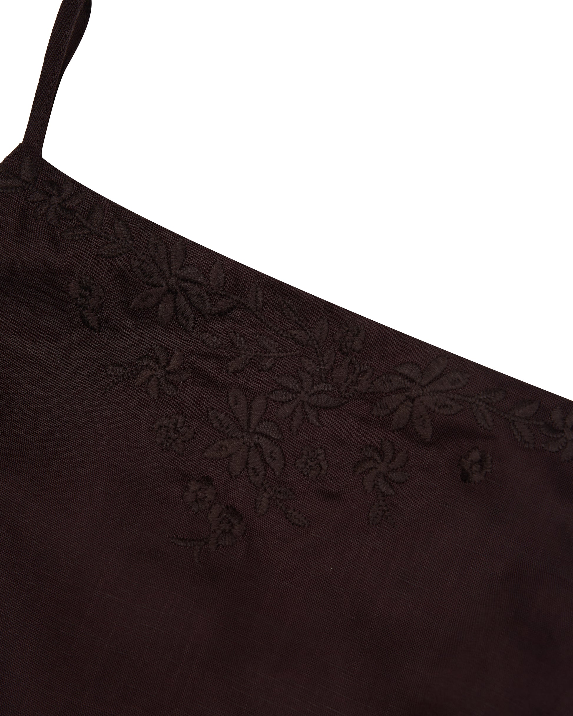 Keepsake Floral Embroidered Linen Top in Espresso
