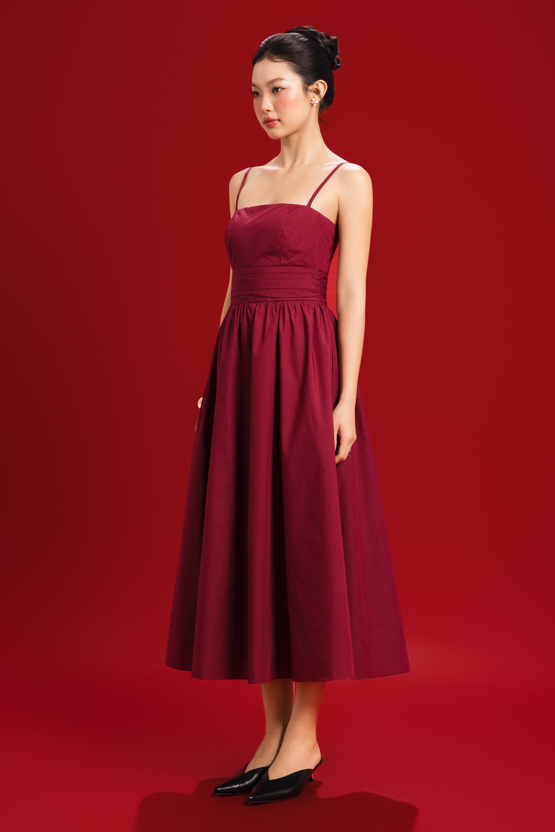 Long Live Fit-and-flare Padded Midi Dress in Burgundy