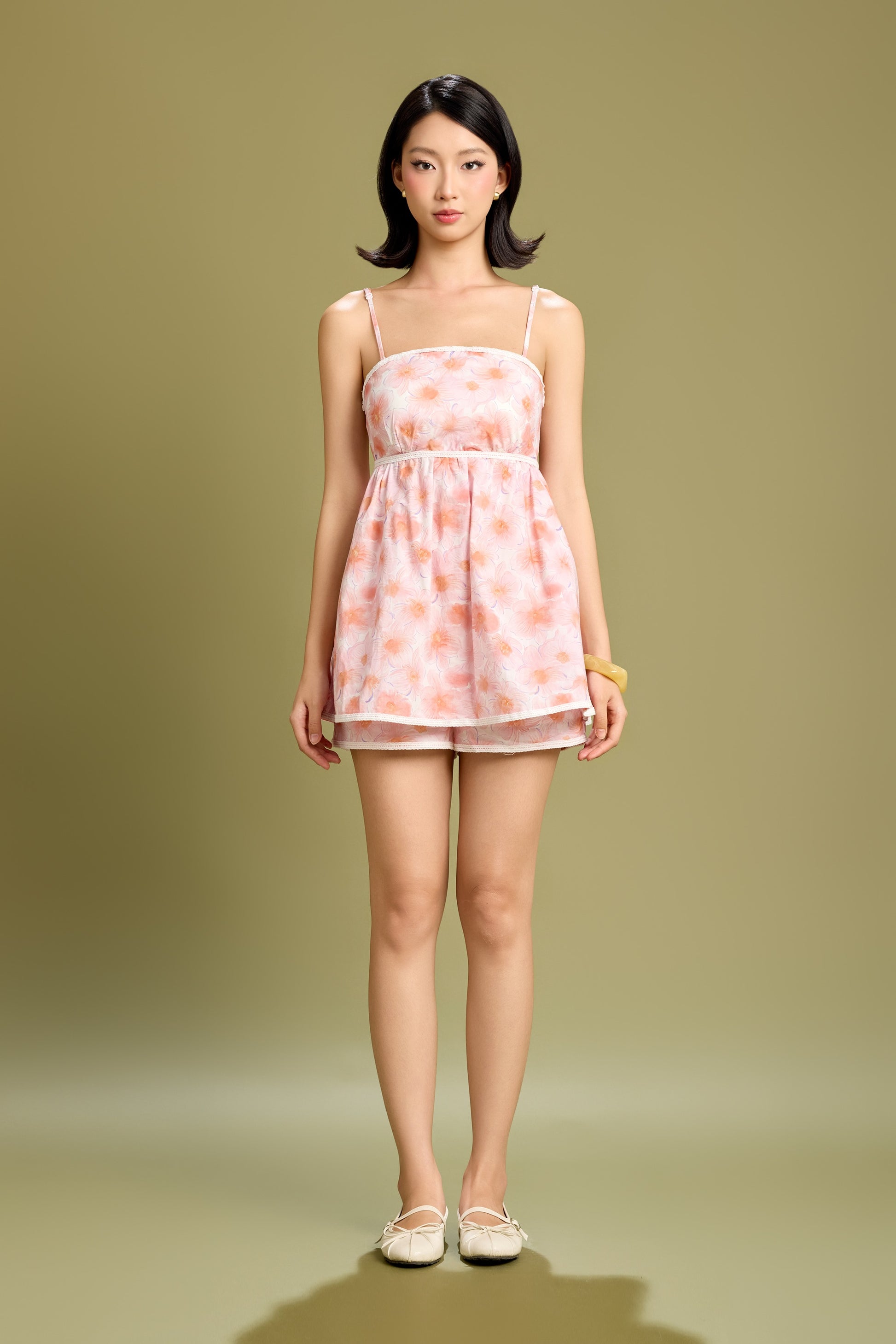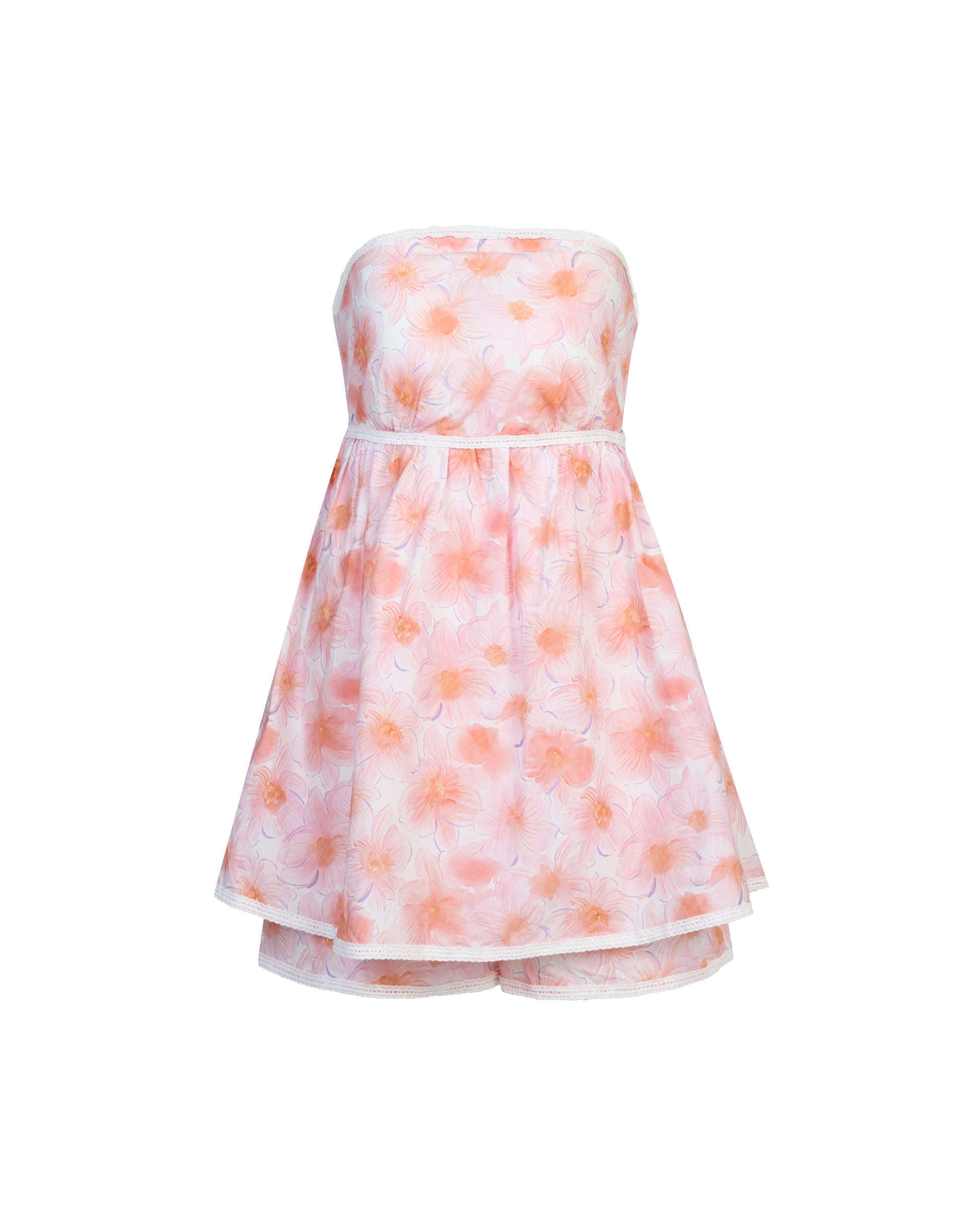 This babydoll romper features soft lace trim, a floaty silhouette and a subtle back split detail that gives off a built-in layered two-piece look.
