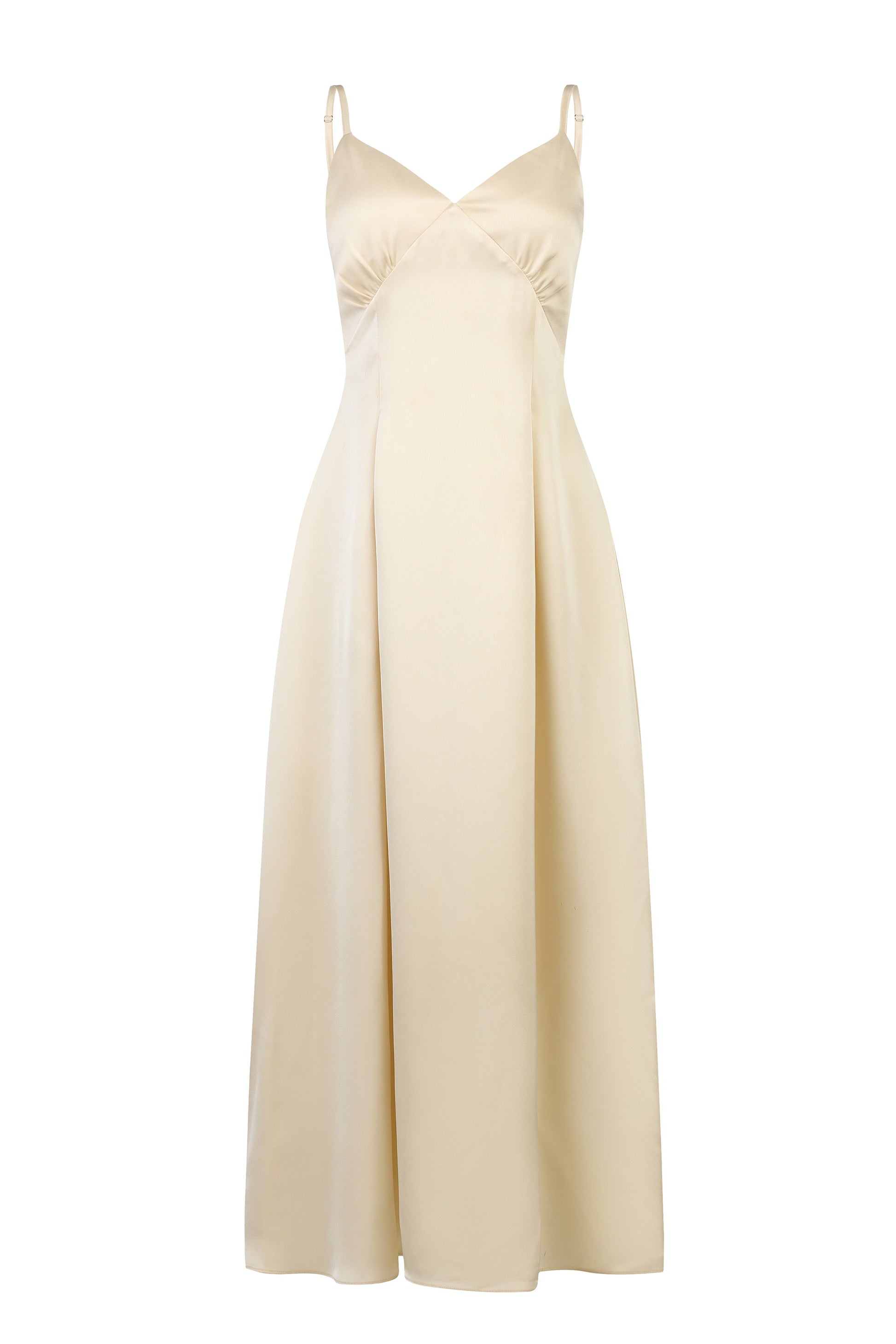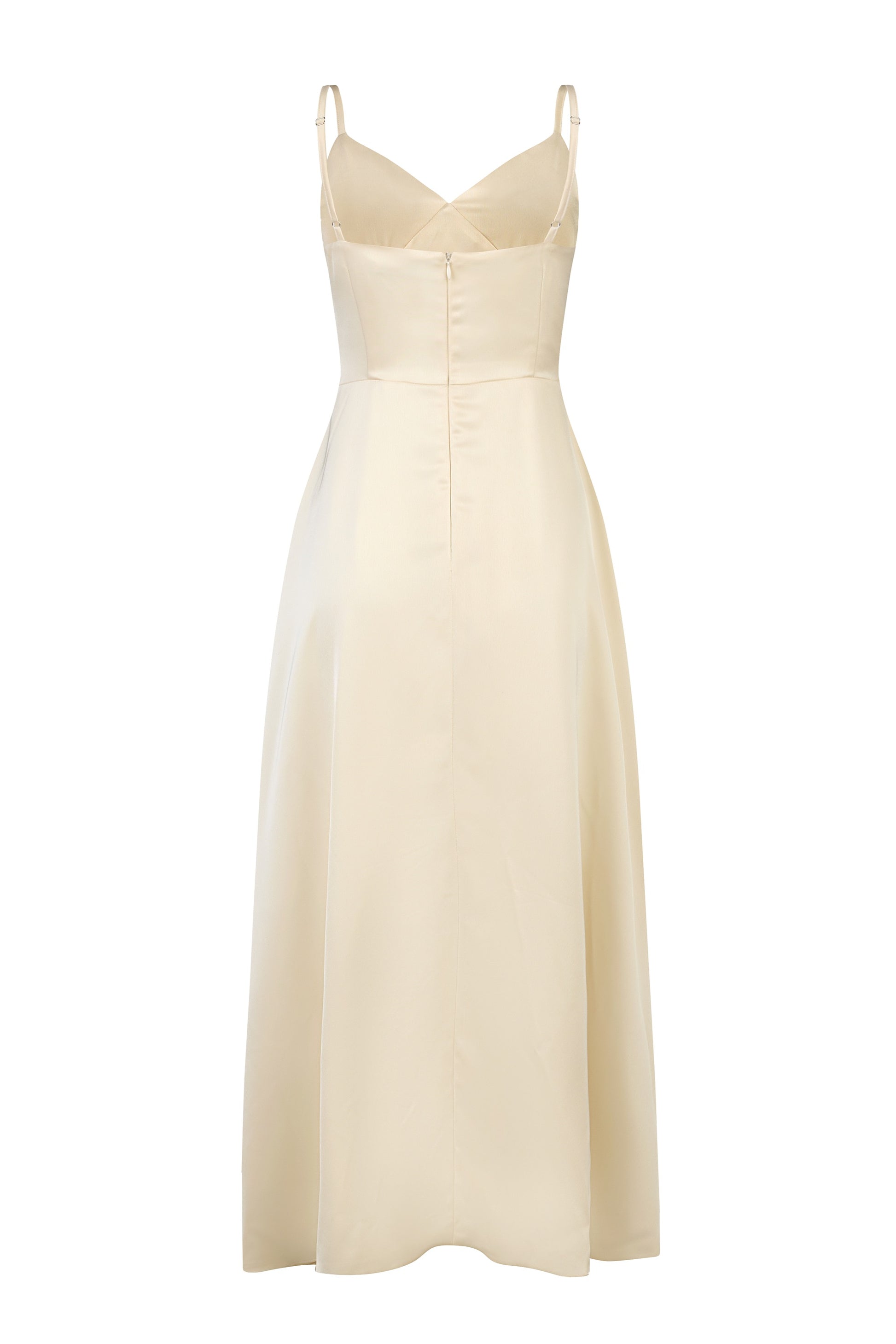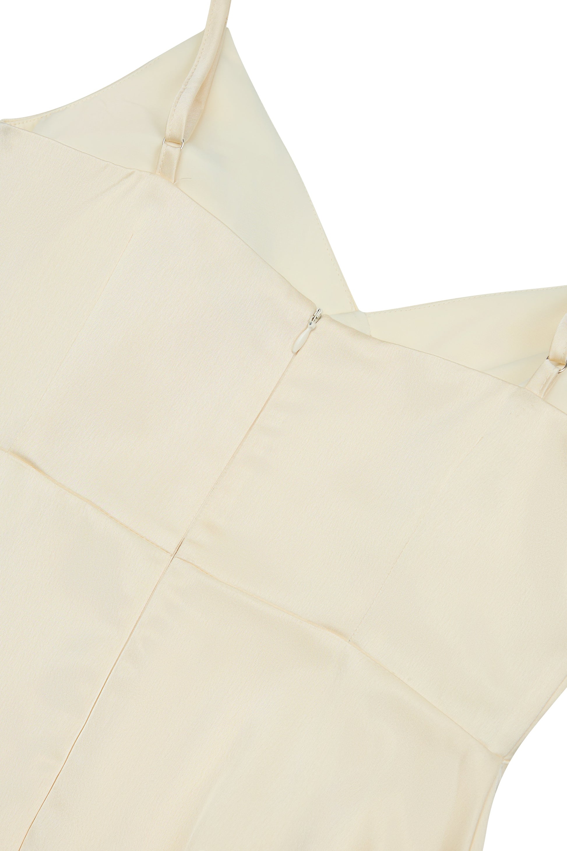 A satin dress that keeps things simple and sharp. Cut with a clean V-neckline and a softly padded bodice for coverage. Adjustable shoulder straps let you fine-tune the fit, while a seamless zip at the back keeps the finish smooth and uninterrupted.