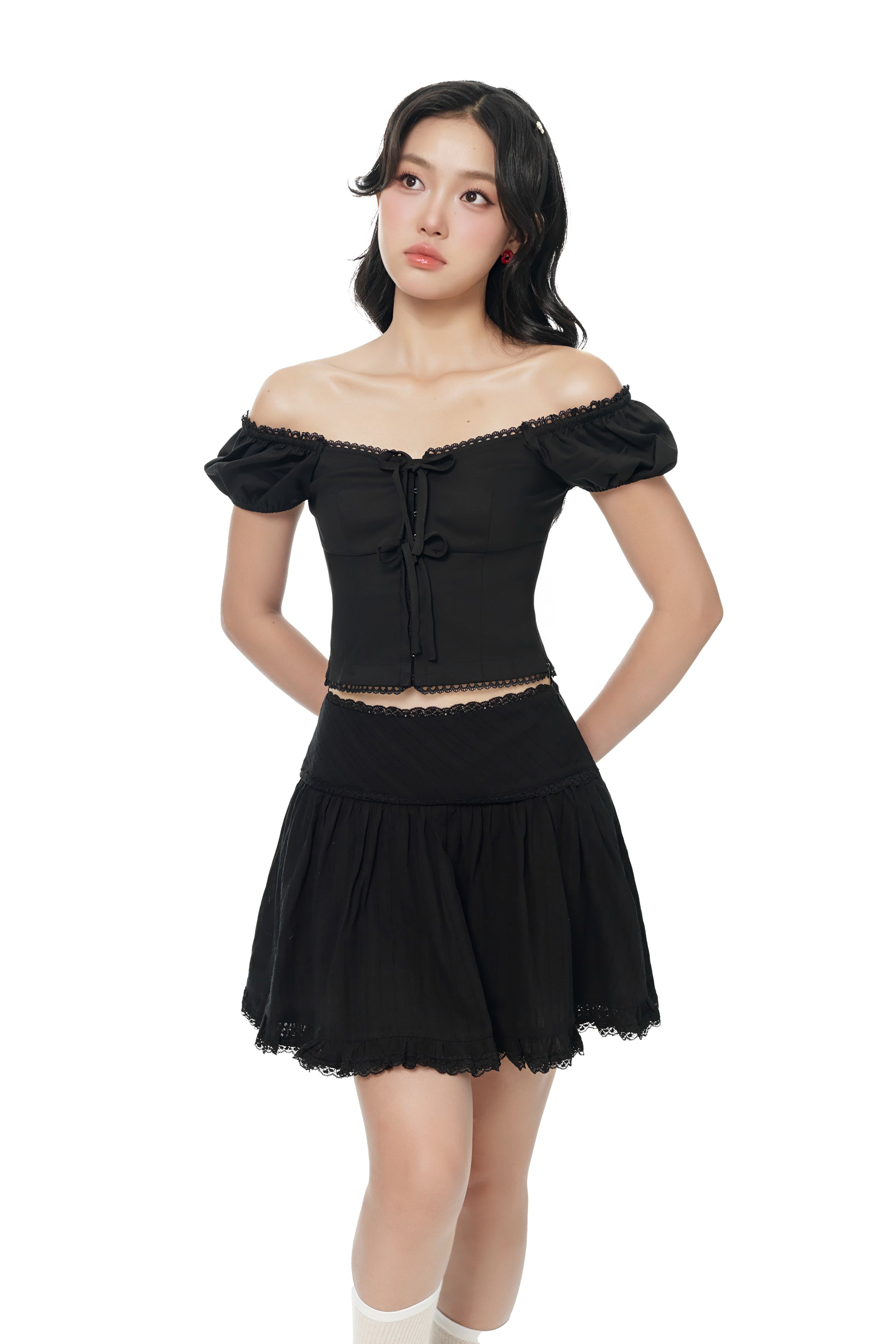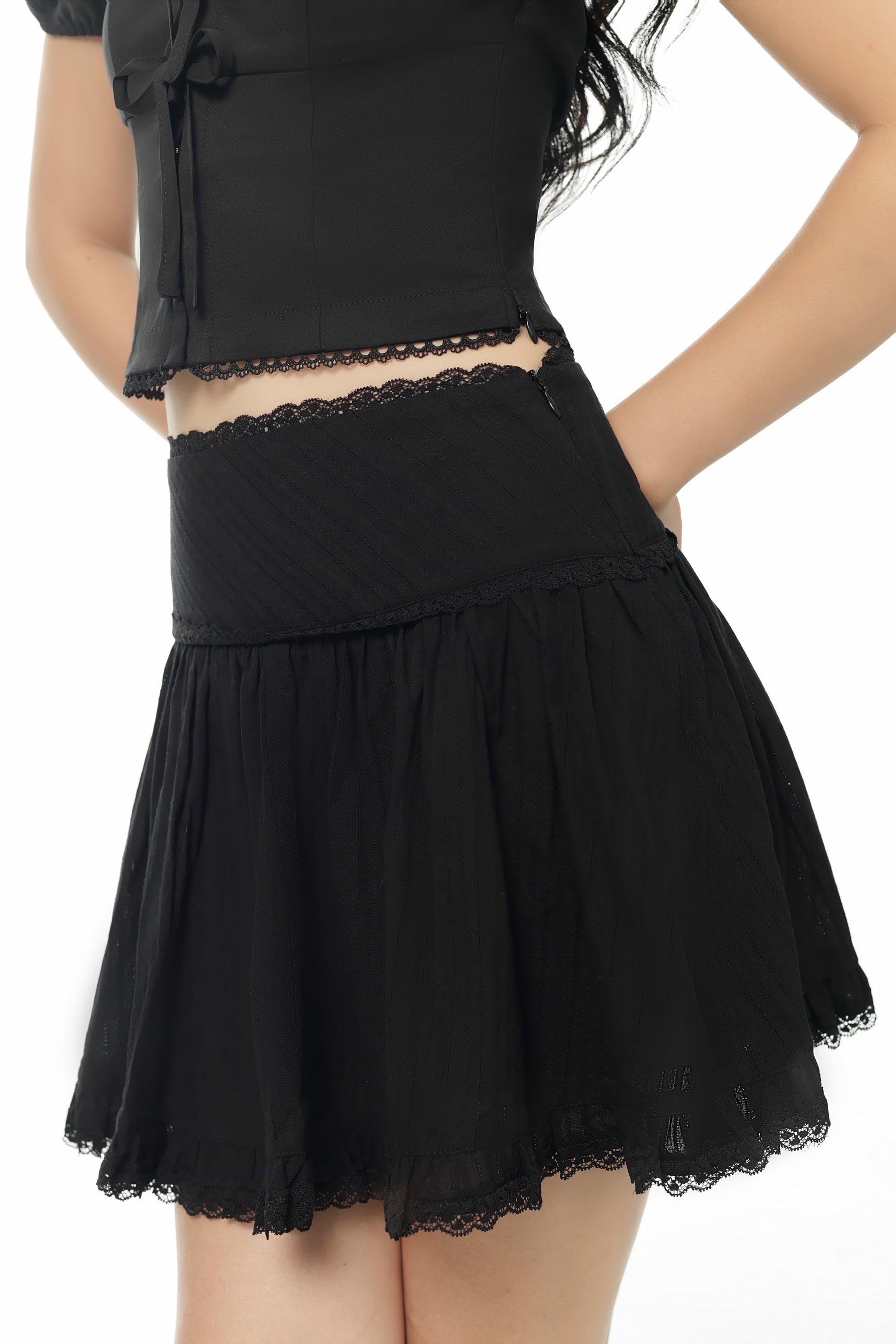 All the cuteness of a skirt, all the ease of shorts. These skorts are made from textured cotton, trimmed with sweet lace, and finished with a flattering A-line cut and side zip. Very 2000s rom-com, main character coded.