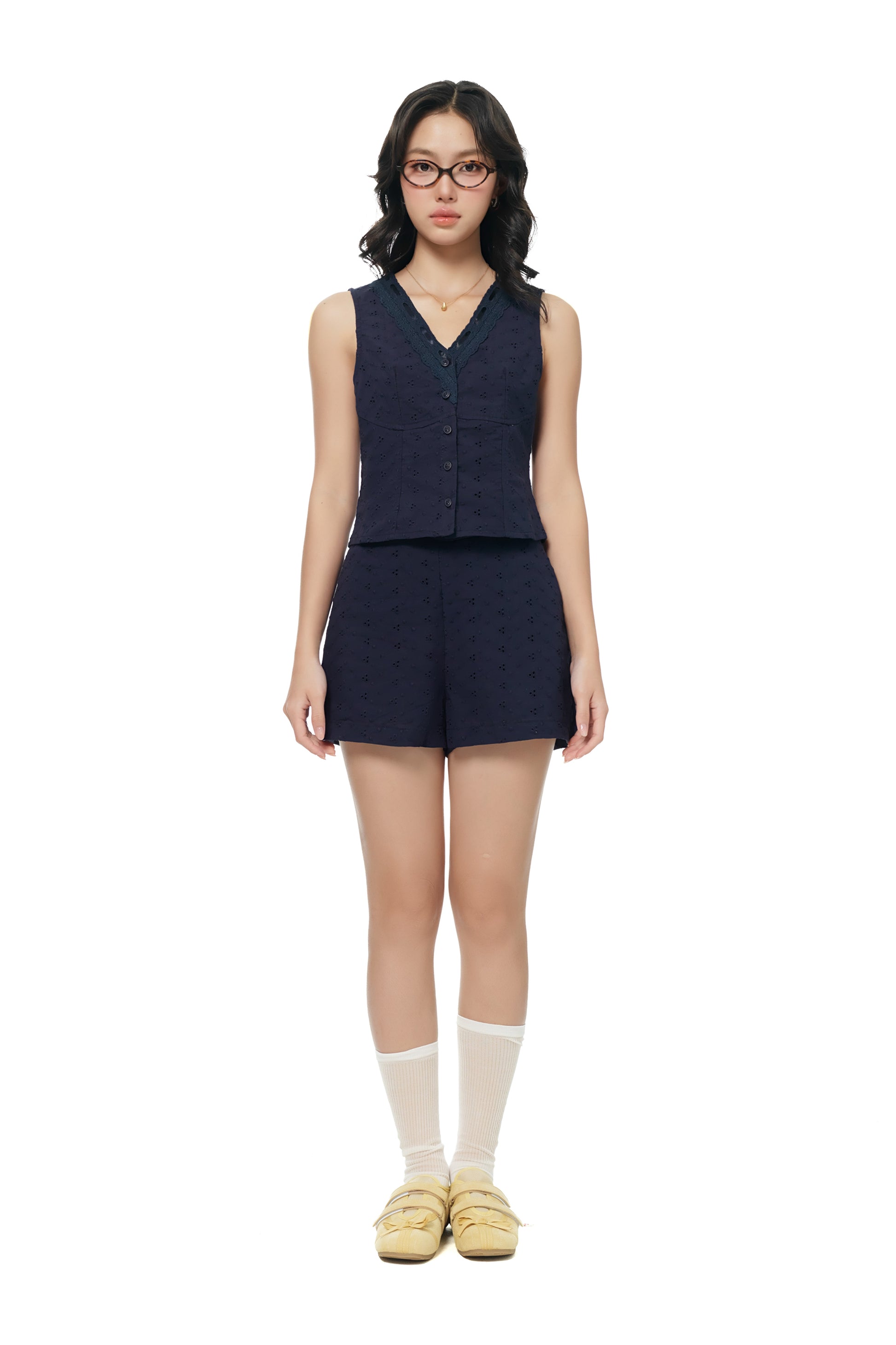 Effortlessly breezy yet polished, the Soft Spot Lace Trim Eyelet V-Neck Top and Short Notice Eyelet A-line Shorts are your ultimate summer set. Made from matching breathable eyelet, they bring casual charm with a put-together edge, perfect for hot days. Pick from white or navy and step out looking weekend-ready without trying.