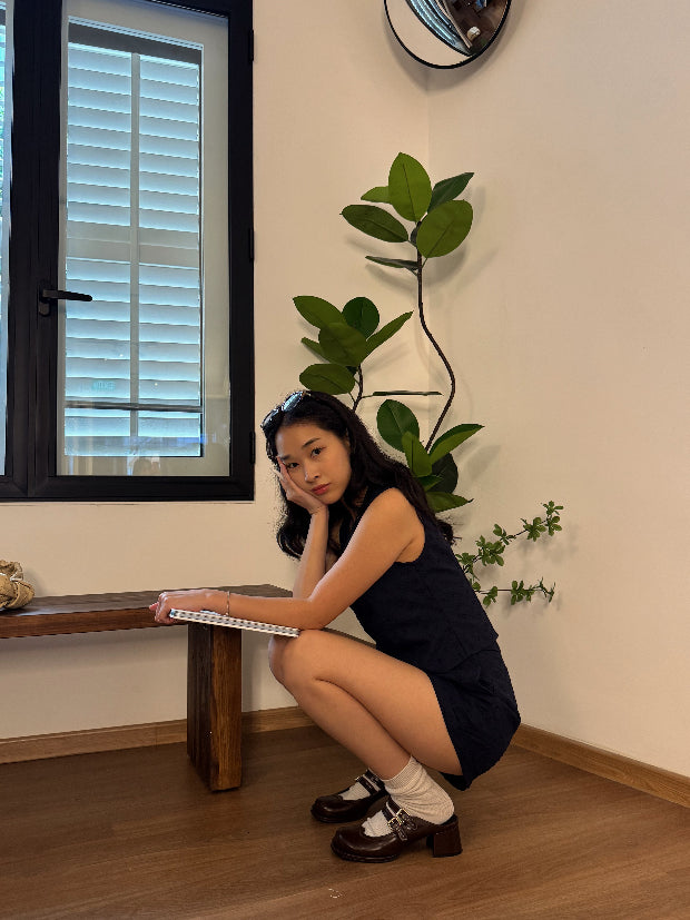 [BUNDLE SET] Soft Spot Top & Riding Round Skirt in Navy